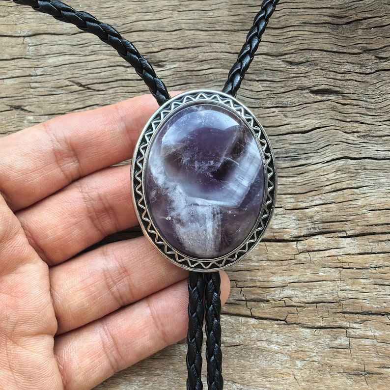 Amethyst Crystal Bolo Tie: Silver-Plated Western Cowboy Necktie