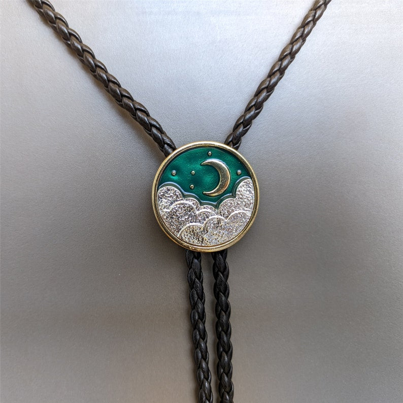 Cloud & Moon Bolo Tie: Western Cowboy Faux Leather Necklace