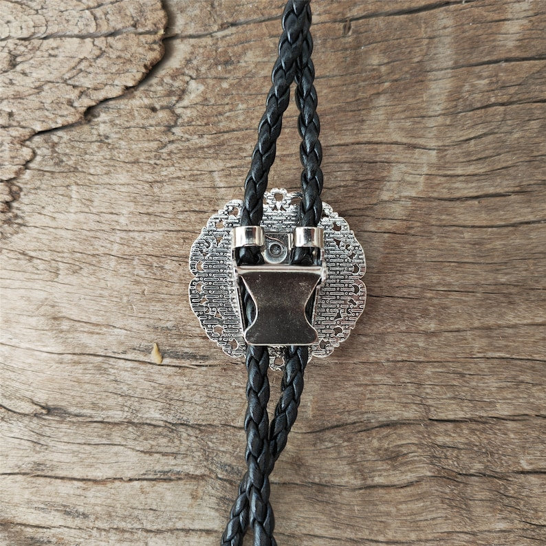 Flower Round Black Agate Bola Bolo Tie