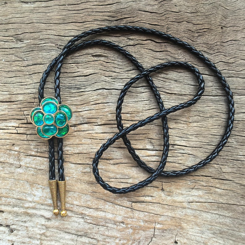 Green Acrylic Flower Bolo Tie: Western Cowboy PU Leather Necklace