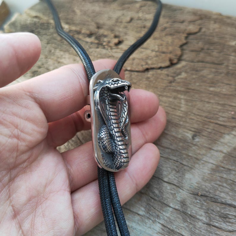 Elevate your cowboy aesthetic with this striking adjustable bolo tie, meticulously crafted for men who dare to stand out. Inspired by the majestic Ophiophagus hannah (king cobra), this serpent-themed Western necktie symbolizes power and wilderness, blending seamlessly into rodeo events, desert festivals, or urban edgy fashion.