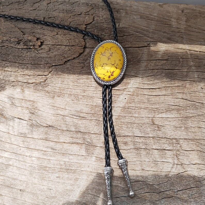 Yellow Turquoise Bolo Tie: Western Cowboy Silver-Plated Necklace